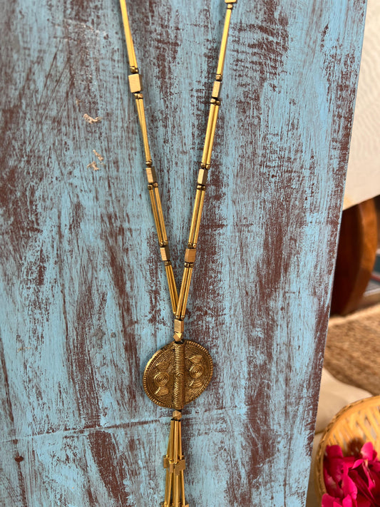 GOLD LONG TUBE NECK PIECE WITH ROUND PENDANT