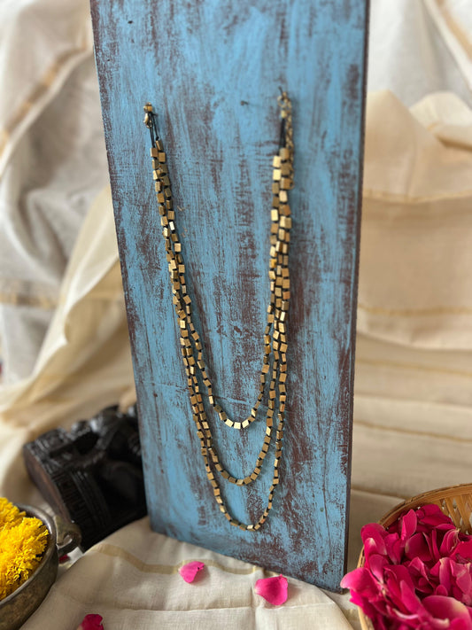 3 LAYERED BRASS LONG NECK PIECE WITH CUBE