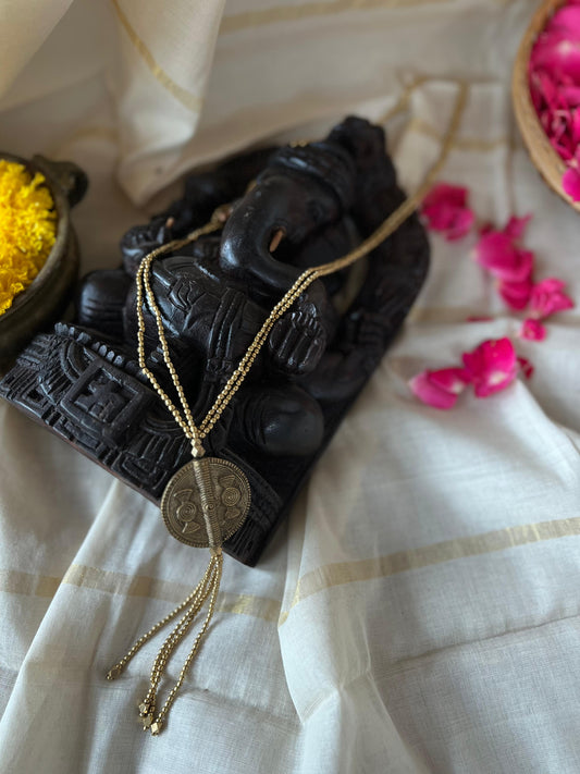 GOLD LONG BEAD NECK PIECE WITH ROUND PENDANT