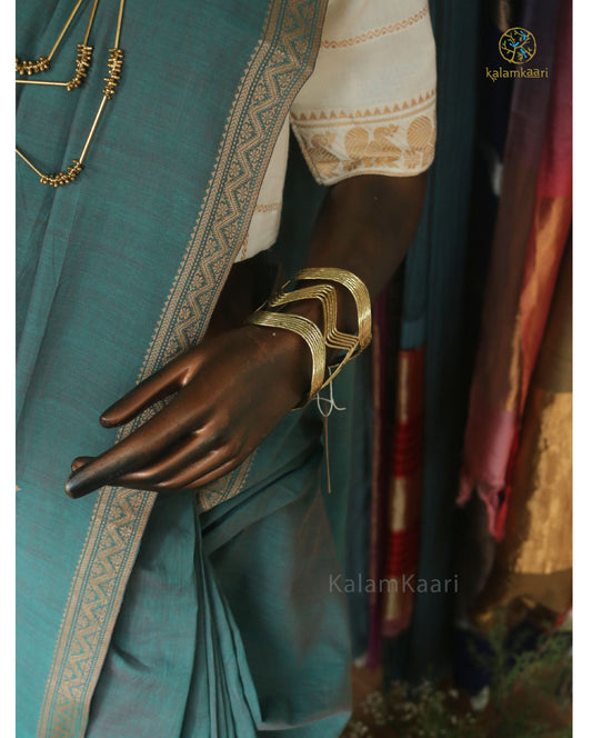 BLUISH GREY SILVER COLORED KASAVU SAREE