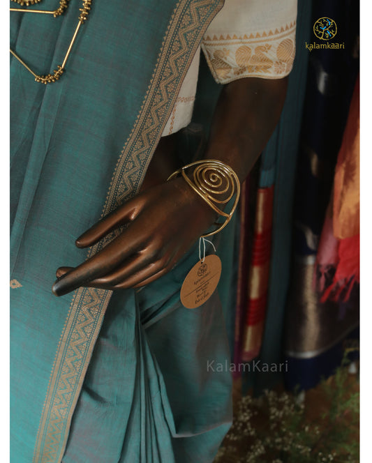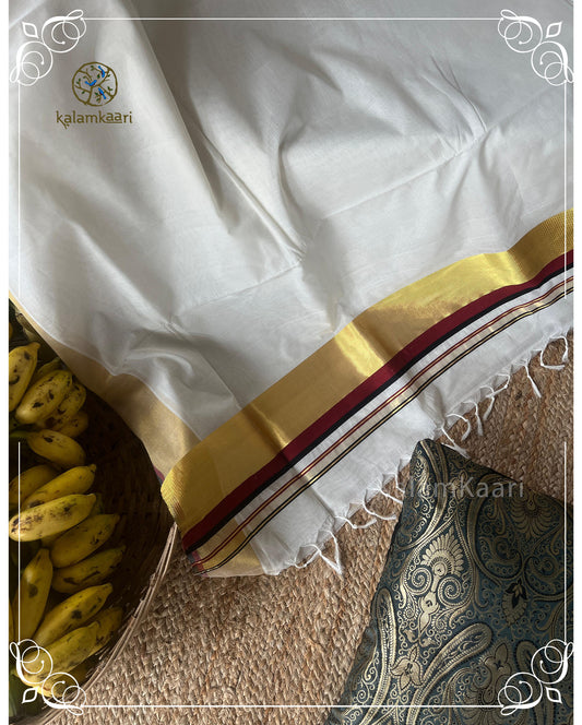 KASAVU SAREE WITH KALAMKAARI APPLIQUE