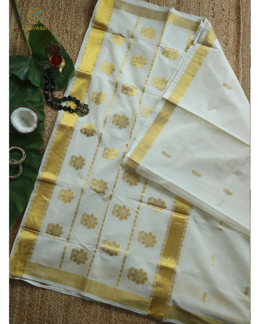 FLOWER JACQUARD COTTON KASAVU SAREE