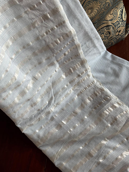 PLAIN WHITE CHANDERI SAREE WITH 1/2"KASAVU