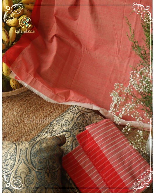 RED SELVEDGE FLOWER BUTTA CHANDERI SAREE