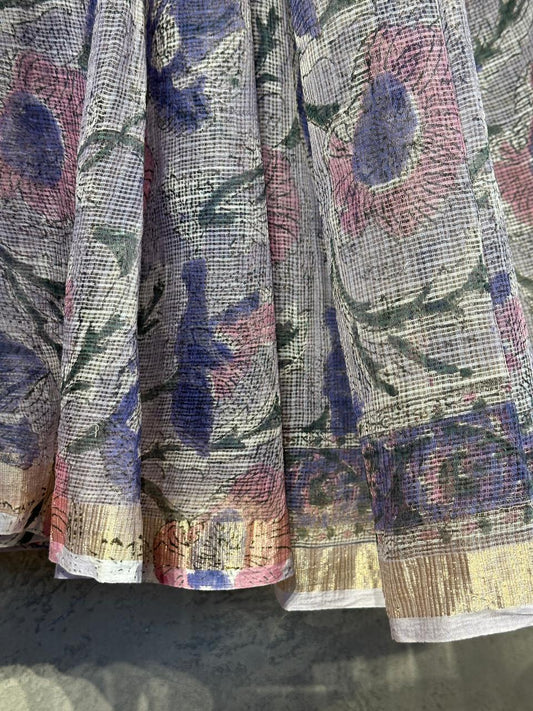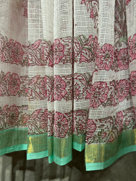 Sold outHAND BLOCK PRINTED KOTA SAREE