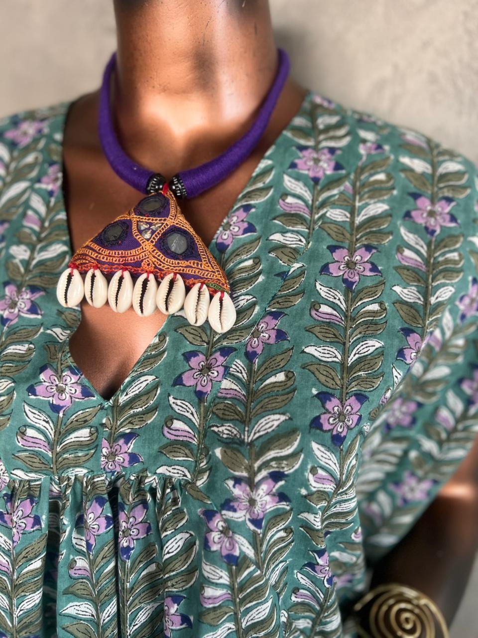 Crafted in soft breezy cotton hand blockprinted by the artisans of Jaipur featuring delicate floral pattern. The dress is crafted in an easy silhouette, celebrating comfort, craft and conscious style. Comes with a pleated neckline with slanted pockets on each side. Loose fit, one size fits all concept.