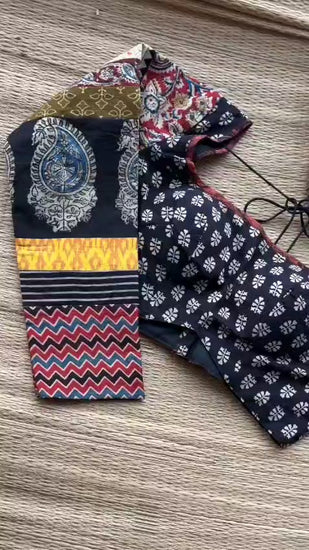 Experience refined elegance through this patch mix sleeve blouse, a testament to thoughtful artisanal design. Featuring strategically placed fabric patches across the sleeves, this piece combines textural variety with sophisticated construction. The mixed-patch technique creates dynamic visual movement while maintaining the refined aesthetic essential to quality handloom wear. Ideal for layering with sarees or wearing as a standalone statement piece, this blouse bridges traditional craftsmanship with contemporary sensibilities. A distinctive choice for discerning patrons who value individuality and meticulous attention to detail.