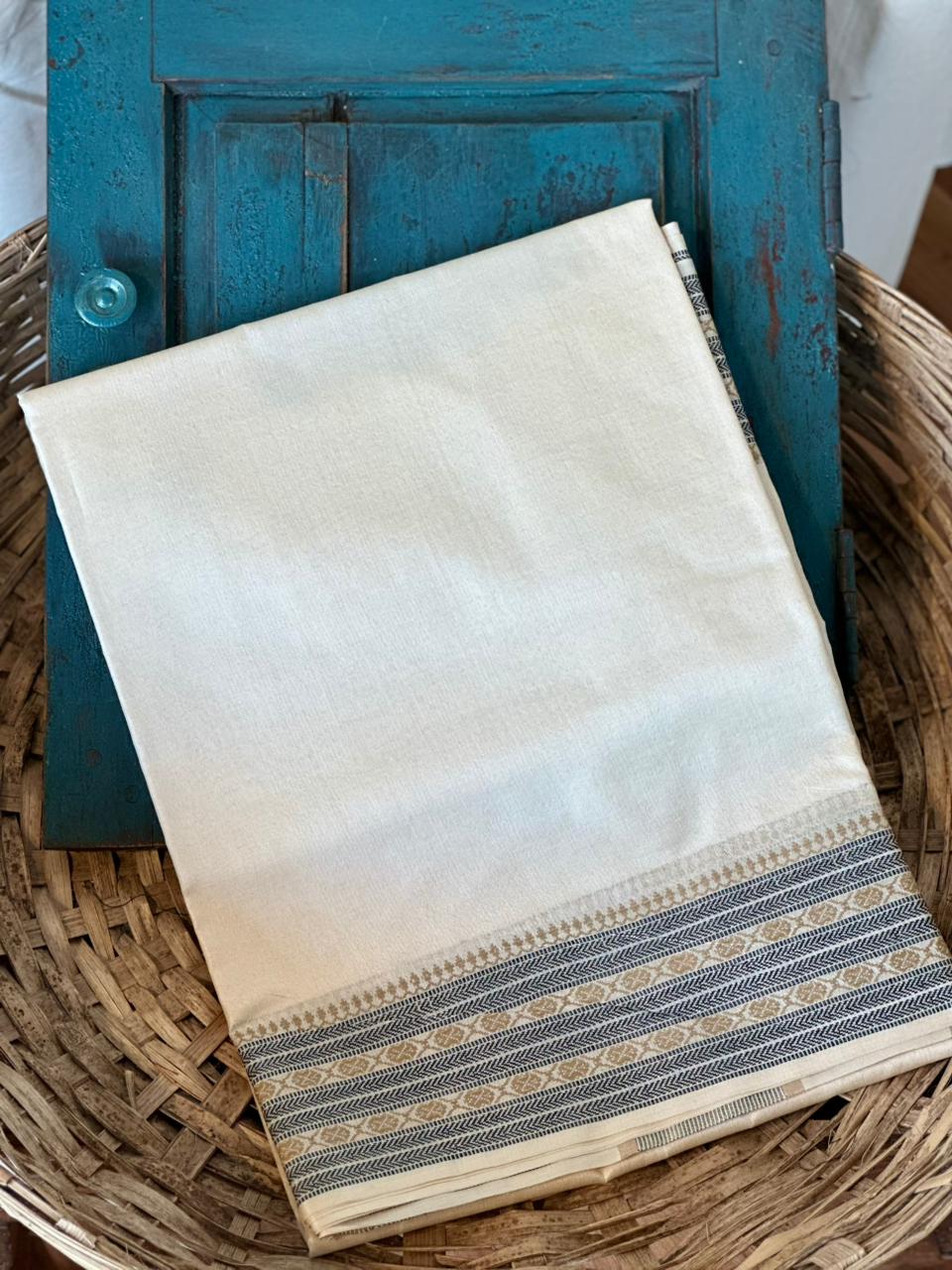 Discover the timeless elegance of this Chhattisgarh Tussar silk saree, a masterpiece of traditional weaving craftsmanship. Featuring distinctive missing checks pattern paired with an ornate zari border, this saree exemplifies the region's rich textile heritage. The natural lustre of tussar silk drapes beautifully, offering both comfort and sophistication for special occasions and celebrations. Each piece reflects authentic handloom artistry, making it a treasured addition to any traditional wardrobe. Perfect for those who appreciate genuine craftsmanship and cultural authenticity.